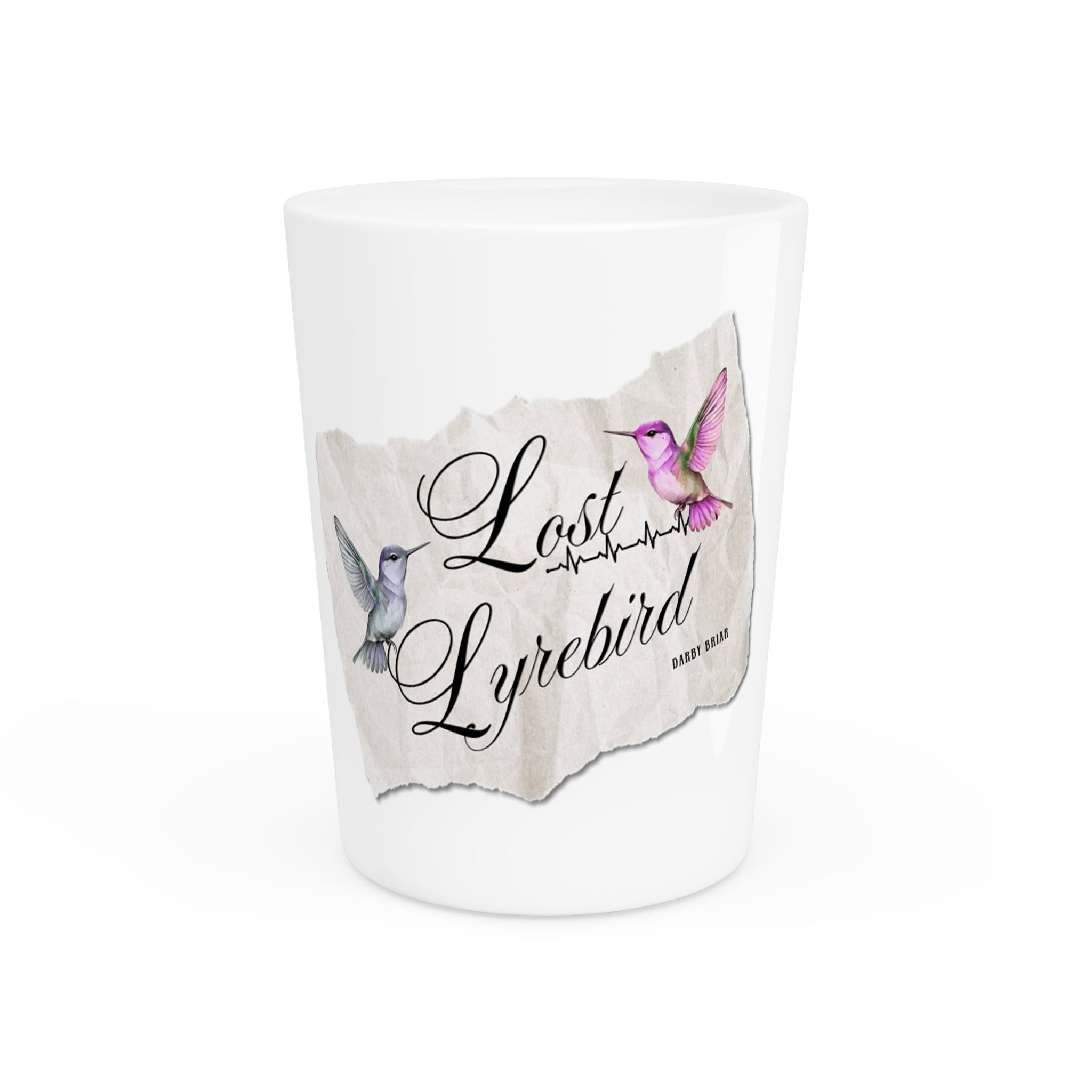 Lost Lyrebird by Darby Briar Book 2 in the Harbingers of Chaos Series - Shot Glass, Bookish Merch, Romance Writer Gift, Literary Party Favors, Reading Club Swag, Unique Gift for Book Lovers, and Romance book-obsessed readers.